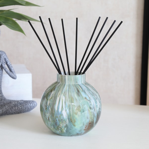 Valencia Marble Large Glass Reed Diffuser Bottle & 50 Fibre Reeds 14cmThis extra large diffuser up to 1 litre of reed diffuser liquid. The marble effect glass is a beautiful addition to the home décor whilst filling the room with a scent of your choice.Liquid is sold separately, please see our Woodbridge diffuser refills.