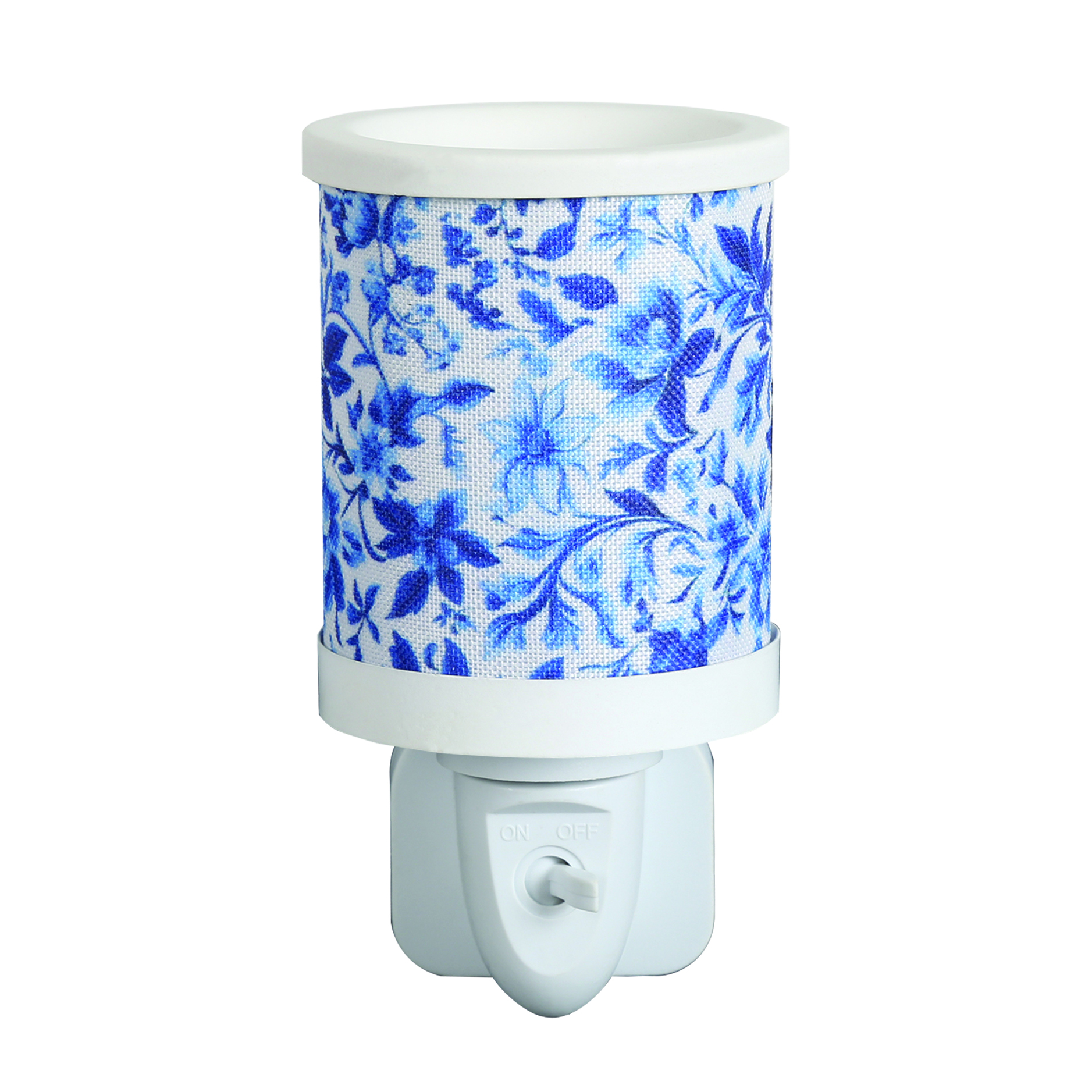 Brighten up any room with light and fragrance using this charming plug in electric wax melter featuring a vibrant blue and white floral design.